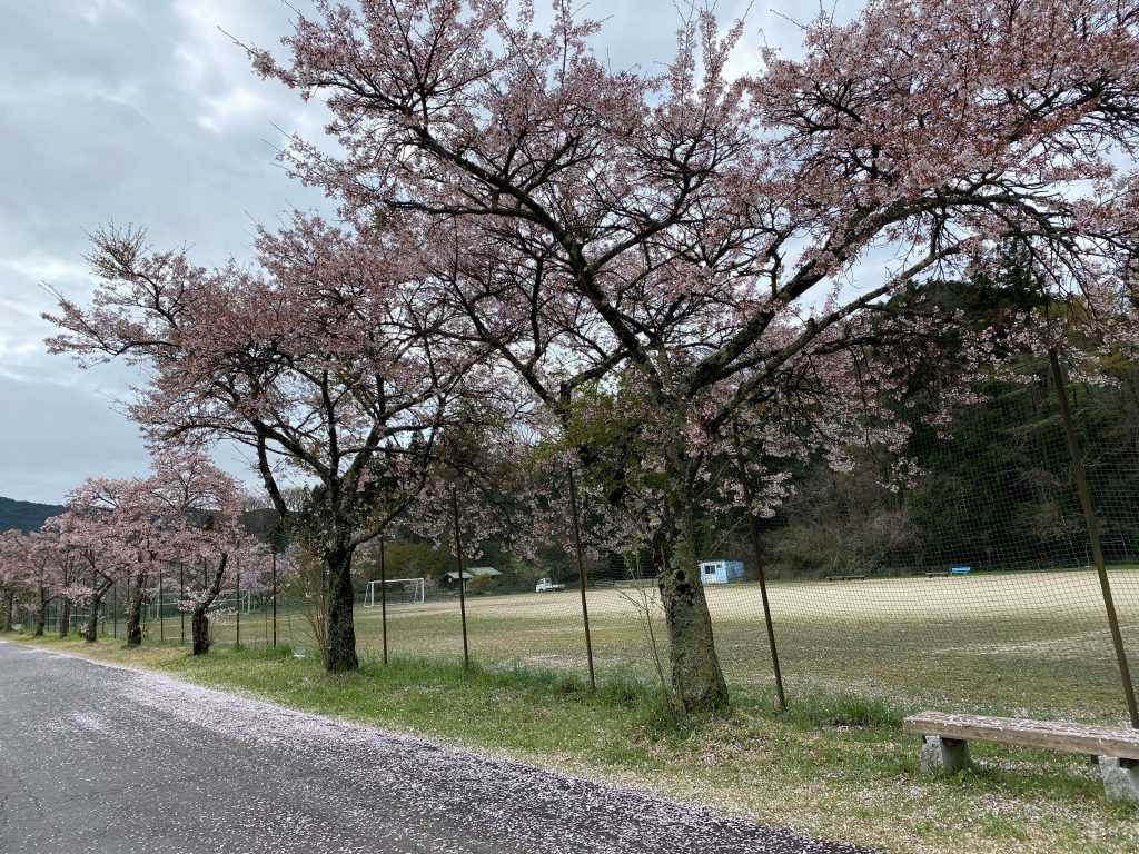 付知川河川敷桜散り始める🌸