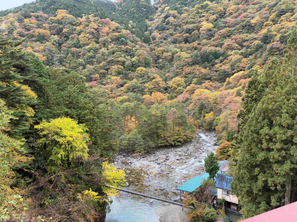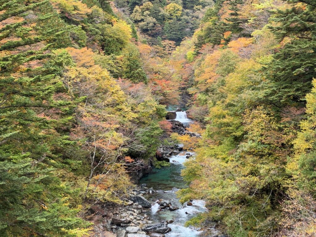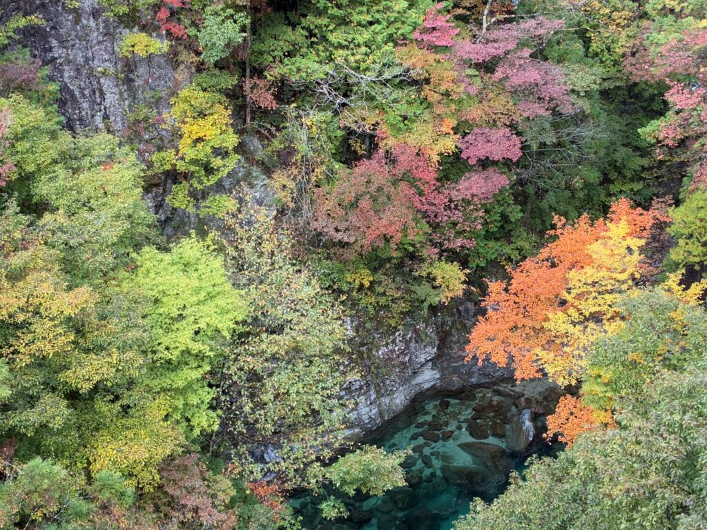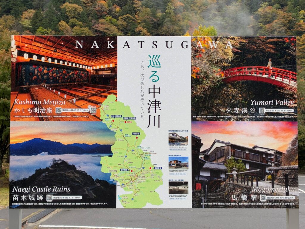 2025紅葉情報 №3 投稿日: 2025年11月3日 投稿者: 付知町観光協会 気温が下がり紅葉は一気に進んでいます🍁 11月3日(祝)9:00 撮影 気温は10℃を下回る 本谷橋から見た下流 不動公園第2駐車場 不動公園駐車場に近隣のおすすめ観光地紹介の看板が設置されました 攻橋から見た上流