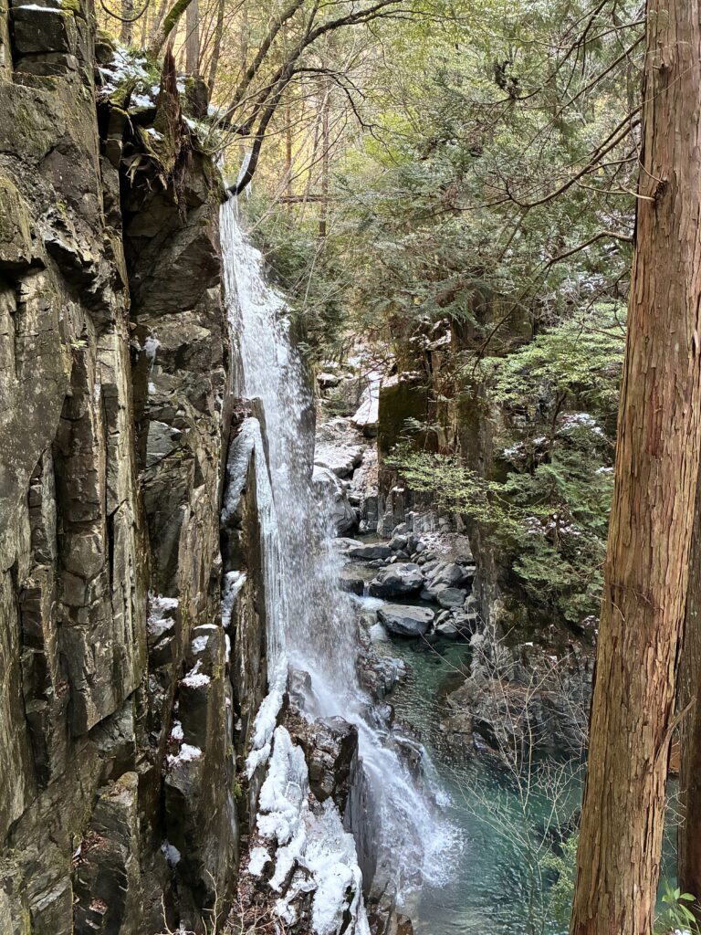 冬 付知峡不動公園 投稿日: 2026年1月19日 投稿者: 付知町観光協会 2026.1.19(月) 今シーズンは、雪が少ないようです。 『観音滝』滝壺の水は澄んで底まで見えます。 流れ落ちる岩肌の端が凍っています。 滝が見えるところまでの遊歩道は、所々凍結しているので、くれぐれもお気を付けください。